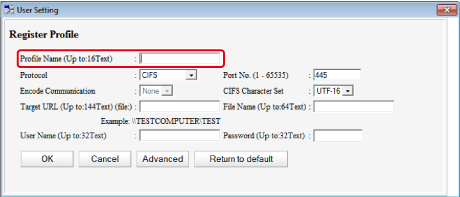 Skriv inn navnet på overføringsdestinasjonen (lagringsmappen) i [Profile Name].