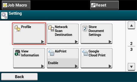 ] en gang, og deretter trykk på [Profile (Profil)].