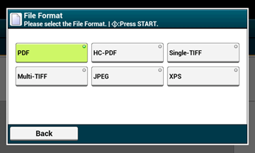 De tillgängliga filformaten varierar beroende på vald färgtyp.