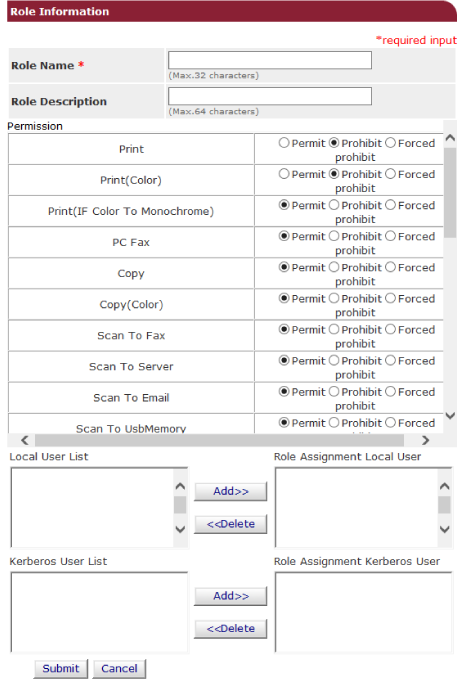 Tryck på [Copy (Kopiera)] till höger om rollnamnet för att visa rollinformationen, ändra objekt efter behov och registrera sedan.
