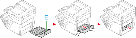 Ta ut duplexenheten (E) genom att dra den snett uppåt medan du håller i enhetens bakre mittficka.