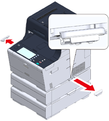 Om den valfria andra fackenheten har installerats tar du bort de två låsstyckena.