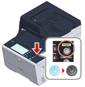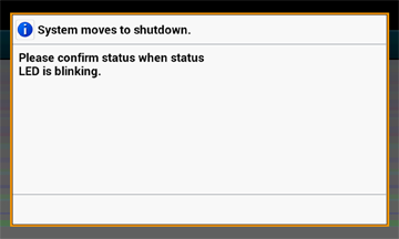 "Systemet stängs av. Bekräfta status om statusindikatorn blinkar." visas på pekpanelen och strömbrytarens LED-lampa blinkar med ungefär en sekunds intervaller.
