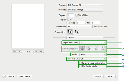 Väljer antalet sidor som skrivs ut på ett pappersark. |