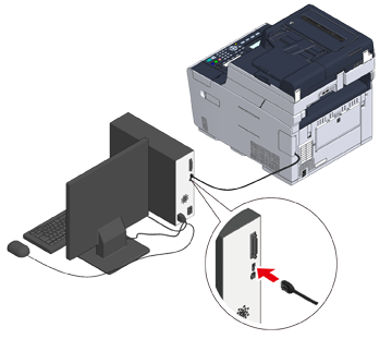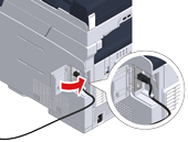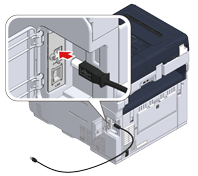 Anslut ena änden av USB-kabeln till maskinens USB-gränssnitt.