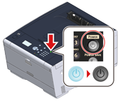 "Stänger av. Var god vänta. Skrivaren stängs av automatiskt." visas på skärmen, och strömbrytarens LED-lampa blinkar med ungefär en sekunds intervaller.