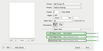 Anger pappersfack Om du anger [Auto Select], väljs facken automatiskt. |
