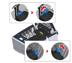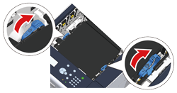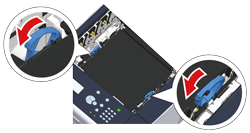 Vrid låsspakarna på båda sidorna av transportbandet mot dig och ta ut transportbandet genom att hålla i låsspakarna.