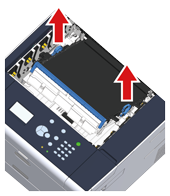Håll fixeringsenhetens handtag och lyft ut fixeringsenheten från maskinen.