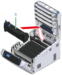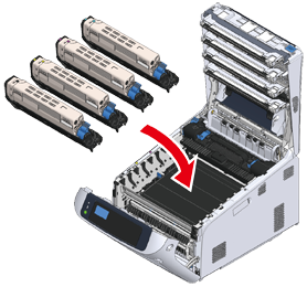 Sätt försiktigt tillbaka alla fyra bildtrummorna i maskinen.