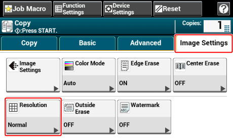 Nyomja meg a [Felbontás] lehetőséget a [Képbeállítások] lapon.