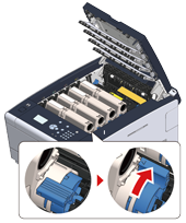 Otočte páčkami vech čtyř tonerových kazet.