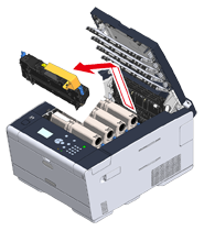 Fixační jednotku uchopte za dradlo a vytáhněte ji z tiskárny.