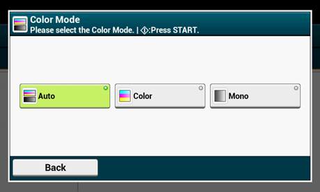 Auto: To urządzenie wykrywa automatycznie kolor każdej strony. (Domyślnie) Dokumenty kolorowe są kopiowane w pełnych kolorach, dokumenty czarno białe są kopiowane w czerni i bieli. Kopiowanie staje się wolne.