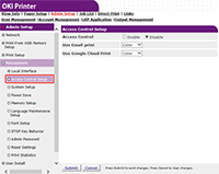 Używanie Google Cloud Print: Utwórz ustawienie dostępu dla funkcji [Google Cloud Print (Google Cloud Print)]. Dostępne są trzy opcje, [Color (Kolor)], [Mono (Mono)] oraz [Disable (Nieaktywne)]. Jeśli wybrane zostanie [Color (Kolor)], otrzymane załączone pliki są drukowane w kolorze oraz odcieniach szarości, zależnie od ich ustawień koloru. Jeśli wybrane zostanie [Mono (Mono)], otrzymane załączone pliki są drukowane w odcieniach szarości. Jeśli załączone pliki są ustawione na kolor, są one konwertowane na czarno-biały przed wykonaniem druku. Jeśli zostanie wybrane [Disable (Nieaktywne)], Google Cloud Print nie będzie wykonywane.