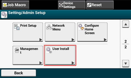 ] öğesine bir kez basın ve sonra [User Install (Kullanıcı Kurulumu)] öğesine basın.