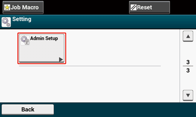 ] öğesine bir kez basın ve sonra [Admin Setup (Yönetici Kurulumu)] öğesine basın.