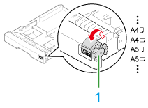 Ρυθμίστε τον δίσκο μεγέθους χαρτιού (1) για να ταιριάζει με το μέγεθος χαρτιού που φορτώθηκε.