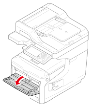 Ανοίξτε τον δίσκο πολλαπλών χρήσεων προς τα εμπρός εισάγοντας τα δάκτυλά σας στις μπροστινές εγκοπές.