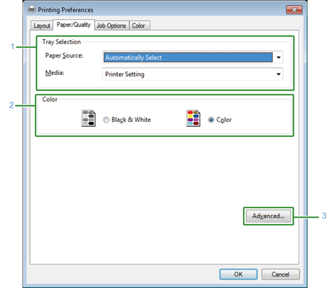 Σας επιτρέπει να ορίσετε λεπτομερείς ρυθμίσεις για την ποιότητα εκτύπωσης και το μέγεθος χαρτιού. |