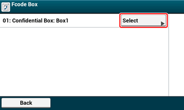 Quando uma caixa F-code confidencial que é configurada para a máquina recebe um documento, uma notificação de recepção de F-code é impressa. Verifique o número da caixa F-Code e, em seguida, imprima o documento armazenado.