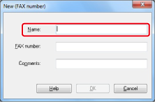 Insira um nome de destino em [Nome] na caixa de diálogo [Novo (Número de FAX)].