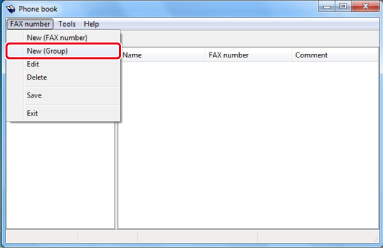 Selecione [Novo (Grupo)] no menu [Número de FAX].