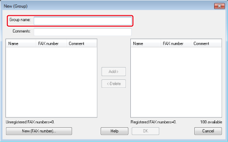 Digite um nome de grupo em [Nome do grupo] na caixa de diálogo [Novo (Grupo)].