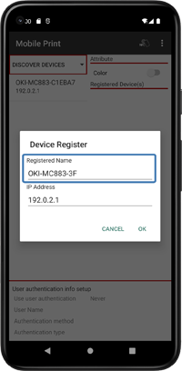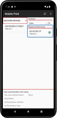 如果您正在使用安卓系统终端,则可通过默认值搜索同一网段中的设备。如需搜索其他网段的设备,进入[Menu (菜单)]> [Change a Search Protocol (更改搜索协议)]> [SNMP (简单网络管理协议)]>[Subnet setting (子网设置)],并选择设置,具体说明待搜索网段的IP地址和子网掩码。
