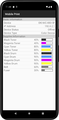 您可以确认打印预览界面上所连打印机和多功能打印机的状态。 预览窗口说明 您选择待打印数据后,显示[Print preview (打印预览)]。 点击 [消耗品信息] 显示设备状态。 注释 如果没有在应用程序中注册设备,则无法点击 [消耗品信息]。