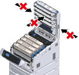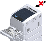 当设备的出纸架处于打开状态时,请勿推动出纸架。
