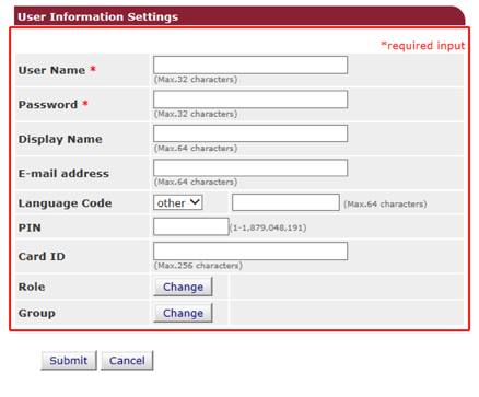 사용자 인증을 위해 로컬 인증을 사용할 때, 웹 브라우저에 사용자를 등록합니다. 최대 5000명의 사용자를 등록할 수 있습니다.