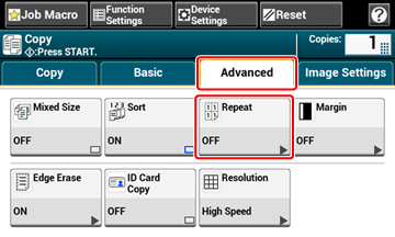 이 기능을 사용하여 용지 한 면에 동일한 문서를 반복적으로 복사할 수 있습니다. 이 문서를 두 번이나 네 번 반복할 수 있습니다.