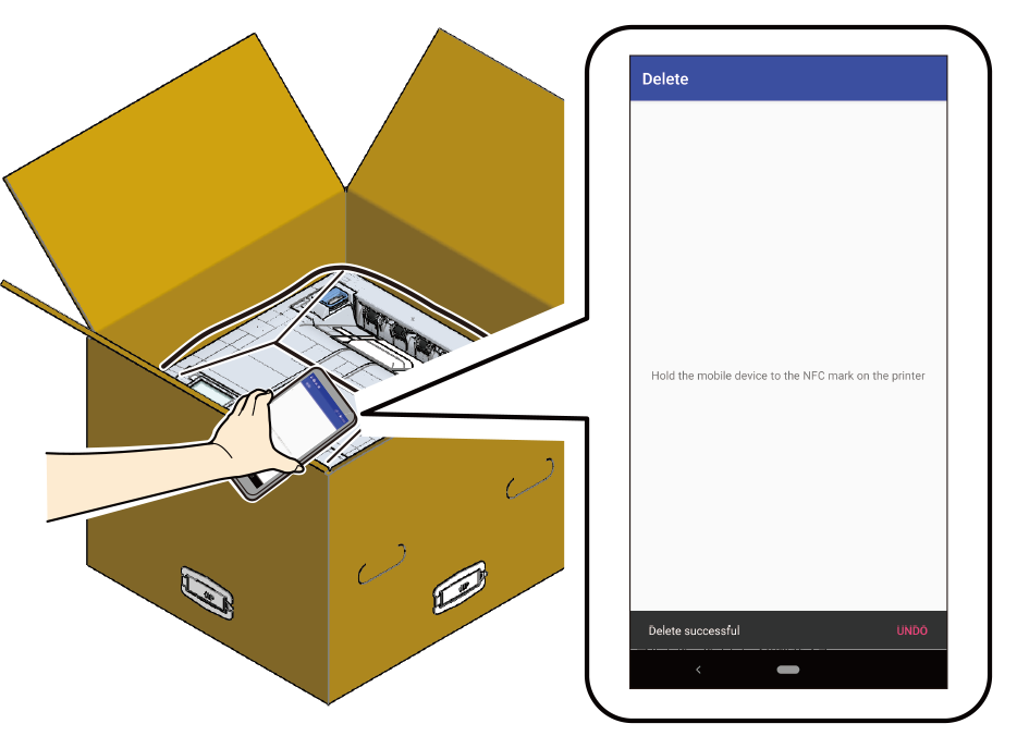 - 삭제된 정보를 복원하려면 [Undo(실행 취소)]를 누르고 기기의 NFC 마크 위에 모바일 장치를 고정합니다.