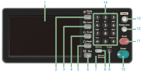 顯示狀態選單。 若出現錯誤狀態,則會閃爍或亮燈。 可檢查耗材的剩餘量和傳真的通訊狀態。 |