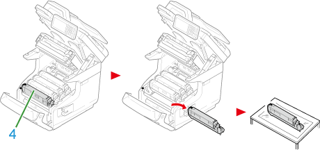 取出機器中的感光鼓 (4),並放在平坦表面上。