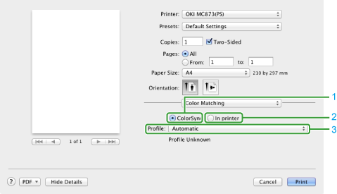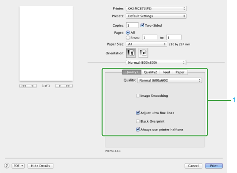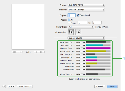您可以在 [配置]、[色彩匹配]、[紙張處理]、[進紙匣]、[封面頁]、[色彩]、[列印選項]、[使用者驗證] 和 [耗材水準] 面板之間切換,進行設定。
