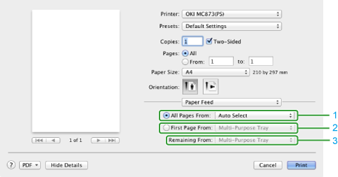 選擇此設定則只會從指定的進紙匣列印第一頁。 |