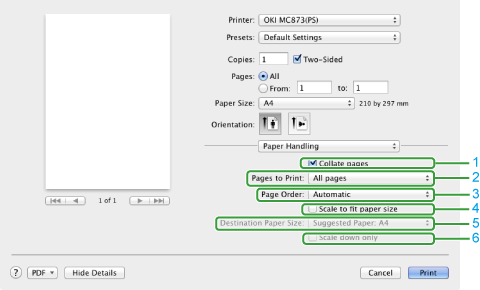 列印至紙張尺寸。 依據設定而定,可能無法正確列印文件。 選擇此核取方塊可放大或縮小文件,以符合輸出的紙張尺寸。 |