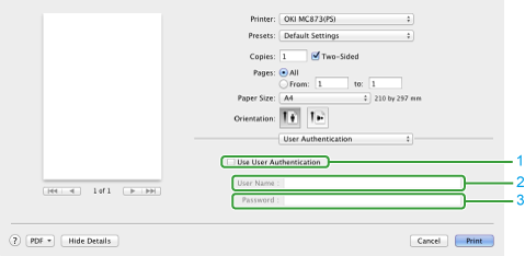 如果您在列印時設定了使用者驗證,請選擇此核取方塊。 |