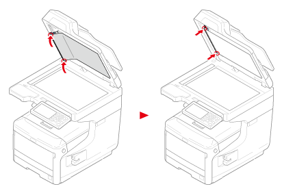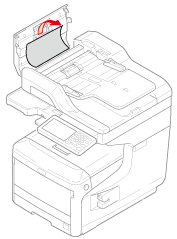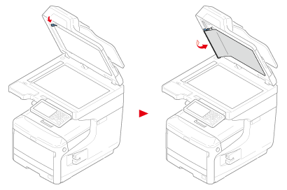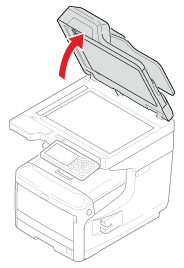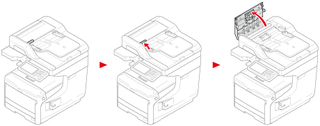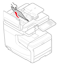拉起自動送稿機面蓋釋放桿,開啟自動送稿機面蓋。