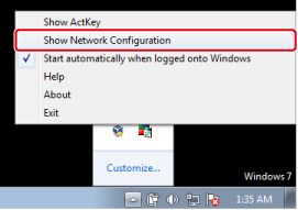 用滑鼠右鍵按一下工作匣中的 [Show Network Configuration (顯示網路組態)]。