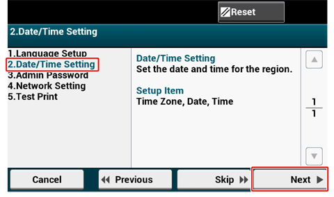 確認顯示 [2. Date/Time Setting (2. 日期/時間設定)] 畫面,然後按下 [Next (下一步)]。