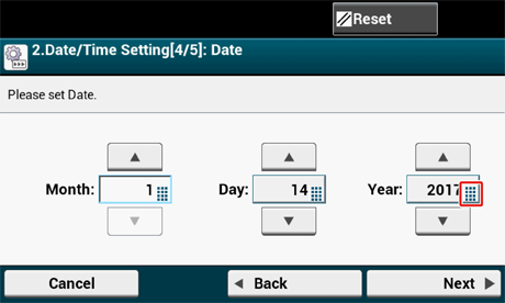 按下 [Year (年)] 輸入方塊一次以輸入年,然後按下 [Next (下一步)]。