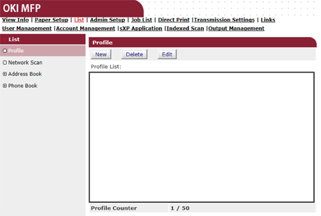 可設定在執行掃描至網路電腦時所需的資訊,並將其登錄為設定檔。 可在設定檔內設定通訊協定、儲存目的地的 URL、檔案名稱、濃度、文件尺寸、彩色格式、黑白格式、以及其他設定。 |