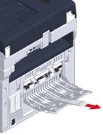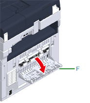 確認機器背面的後出紙架已關閉。若後方出紙架已開啟,紙張會一律輸出至後方出紙架。