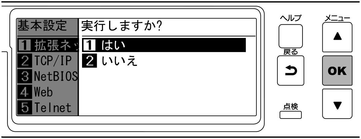 「この設定で実行しますか?プッシュボタン方式」が表示されたら、[はい]が選択されていることを確認し、《OK》を押します。