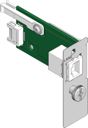 本機を2つの異なるネットワークに有線LANで接続して使用したいときに取り付けます。取り付けたあと、操作パネルで拡張有線LANモジュールを有効にする手順が必要です。