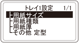 ▲または▼を押して、[ラベル紙]を選択し、《OK》を押します。選択した値の左側に、[*]が付いたことを確認します。