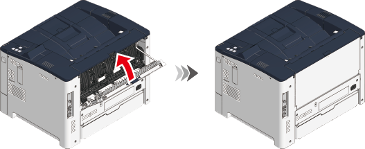 装置内部の青いレバーを上に持ち上げてロックし、カバーを閉めます。